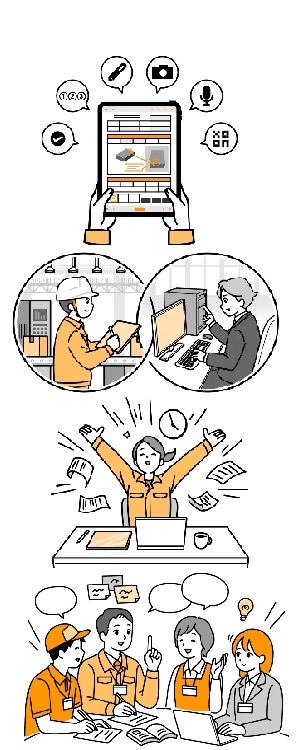 i-Reporterのユーザーコミュニティ『現場帳票カイゼン部』を通じて、全国のi-Reporterユーザーが行う現場カイゼンのナレッジ共有や、お悩み相談が可能。現場DXの推進速度が上がります。