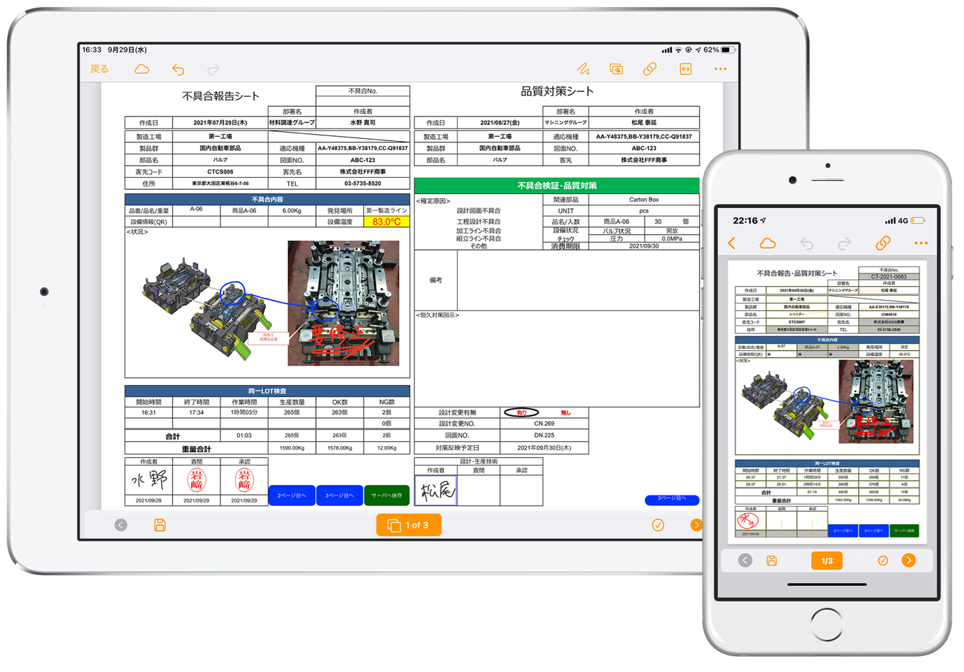 いままで使い慣れた、現場ノウハウの詰まった紙帳票のレイアウトをそのまま電子帳票に置き換えることができます。帳票が変わらないので現場の方も直感的に理解することができ、導入が簡単です。