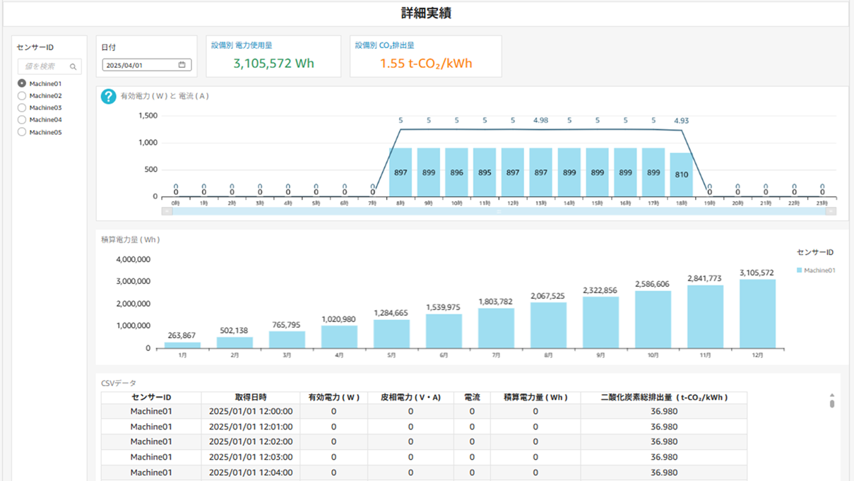 こんなお困りごとに・・・ 製品単位のCO2排出量の提示を求められた…。 キュービクル・分電盤は積算電力計で電力測定しているが、製品単位の電力(CO2排出量)の算出ができない…。 ・ 生産実績と紐づけることで、製造ロット・製品単位で電力(CO2排出量)が算出可能に! ・ 有効電力が計測できるから正確な電力量を求められる! ・ ワイヤレス&クランプ式&電池駆動センサ だから電気工事不要! スピーディに導入できた! ・ 電力値から稼働状況をモニタリング・分析が可能に! ・ 効率的な製造ラインを優先利用できるようになった!