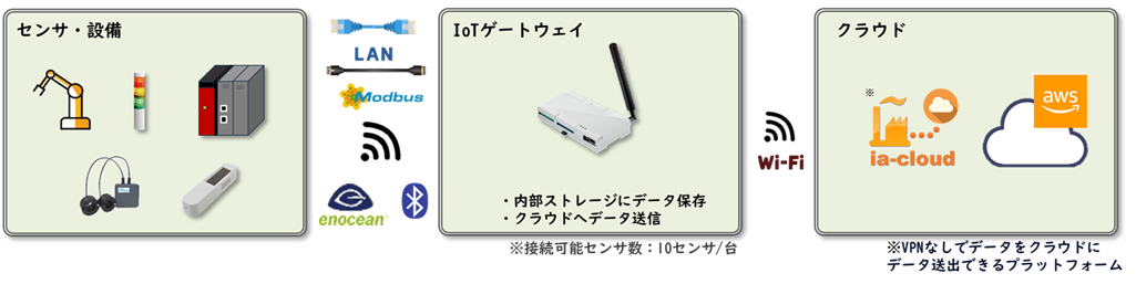 特徴 1.センサ選定から現地導入までトータルサポート! 2.後付け&ワイヤレスセンサで簡単IoT化*1 3.用途に応じて豊富なセンサをラインナップ*2 4.オンプレ・クラウドどちらにも対応 5.カーボンニュートラル対応の分析機能を搭載 6.既存の生産設備・デバイスとの連携も可能 *1通信規格 Bluetooth,EnOcean *2温湿度センサ,電力センサ,スイッチセンサ,人感センサ,加速度センサetc