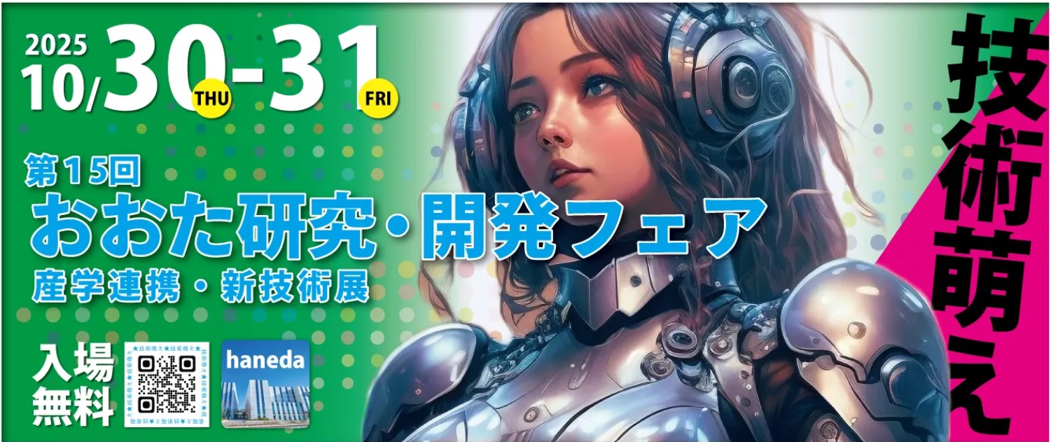 NKワークスは東京都大田区が主催する「産学連携・新技術展」 第15回<おおた研究・開発フェア>に出展いたします。 ●会 期: 2025年10月30日(木)~31日(金) ●時 間: 10:00 ~17:00 ●会 場: コングレスクエア羽田およびPiO PARK(東京都大田区羽田空港1-1-4) ●主 催:大田区・(公財)大田区産業振興協会 ●小間番号: 24(展示会場②【ルーム】) ●入場方法: 無料(公式サイトでのWEB登録が必要です)